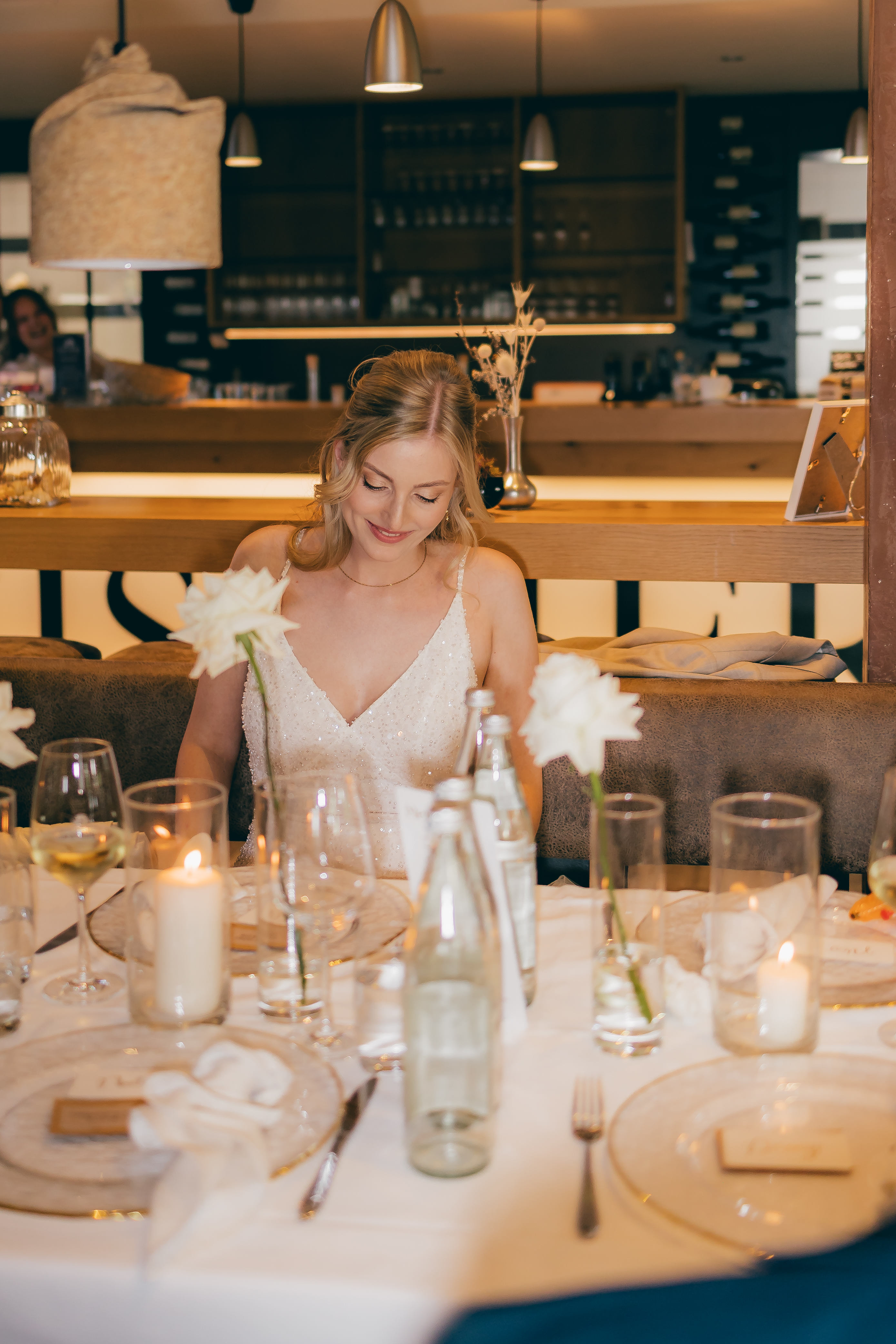 Das Abendessen im Rahmen dieser Hochzeitsfeier auf dem Weingut Fischer in Heilbronn wurde von der hauseigenen Küche des Weinguts begleitet. Ein fein abgestimmtes Menü, ergänzt durch eine Weinbegleitung mit hauseigenen Weinen unterstrich den eleganten Stil des Tages. In entspannter Atmosphäre, bei warmem Licht und mit Blick auf die Weinberge wurde das gemeinsame Hochzeitsdinner zu einem genussvollen Mittelpunkt der Feier nahe Stuttgart.